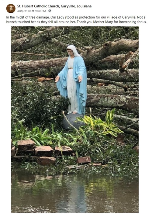 On August 30, a church near New Orleans published the top photo of their unscathed statue of Mary. The post inspired others to post photos of other Mary statues the storm didn’t touch.