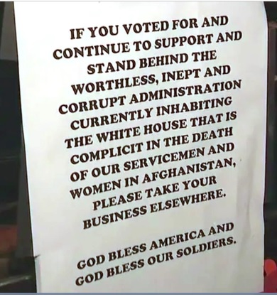 BUY-COTT: After a central Florida diner posted this sign, patrons swarmed to eat there. On Wednesday, they had to close early because they ran out of food.