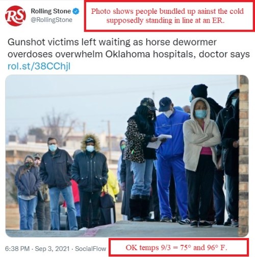 - https://twitchy.com/samj-3930/2021/09/05/no-one-thought-to-fact-check-rolling-stone-rachel-maddow-busted-pushing-fake-story-about-ok-hospitals-overwhelmed-with-horse-dewormer-ods/