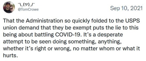 HYPOCRISY: The vax mandate FAUXTUS promised he’d never impose is supposedly about conquering COVID-19. But it doesn’t apply to migrants flooding across our southern border. And the USPS negotiated an exemption.