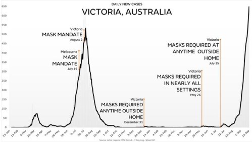 MASKS: As the graph shows, masks are inconsequential in the control of the virus. Australia’s tyrannical government Does Not Care.
