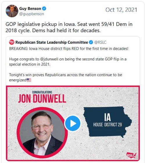 - https://townhall.com/tipsheet/guybenson/2021/10/13/vibe-check-gop-flips-longheld-blue-seat-in-iowa-special-election-n2597375