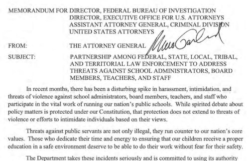 - https://www.justice.gov/opa/pr/justice-department-addresses-violent-threats-against-school-officials-and-teachers