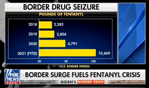 OPIOID CRISIS: Trump made this a priority. Now, FAUXTUS’ open border policy has made it many, many times worse. CLICK https://rumble.com/vnqz8b-fox-more-fentanyl-seized-at-border-this-year-than-previous-three-combined.html [2:11] to see Fox News report.