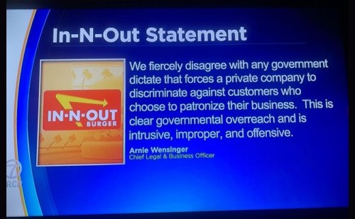 IN-N-OUT: The chain is refusing to check vaxxx cards and the Dem Jackboots are punishing them for it. In San Francisco, one of their restaurants was temporarily closed, then allowed to reopen without indoor eating. In Pleasant Hill, California, one of the locations was visited three times by enforcement officers and fined twice for a total of $750. If you live near one, go buy something!