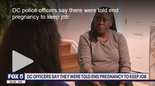 D.C.: On Tuesday, two female police officers revealed that, as young recruits, they were told to either abort their pregnancies or leave the force. The video at the link is heartbreaking.