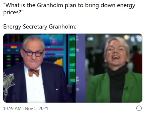 ENERGY: CLICK https://twitter.com/RNCResearch/status/1456610771186634757 [:34] to hear FAUXTUS’ Energy Secretary laugh about the idea that the American government could somehow have anything to say about high gas prices. This video should play on a loop at every gas pump in America.