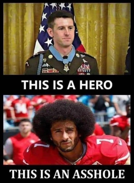 FAKE HERO: “And if you want to admire a courageous black athlete that fought through adversity to better his station and the world, there are a lot better choices….Jackie Robinson and Henry Aaron immediately come to mind….than this kid who was raised by well to do white parents, got a scholarship to Stanford, made millions as an NFL QB, then decided when his skills were eroding to make himself a fake martyr.” – Wayne Jones