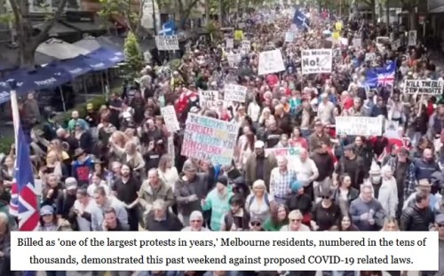 AUSTRALIA: This past weekend, tens of thousands of Australians took to Melbourne’s streets to protest draconian new lockdown laws.