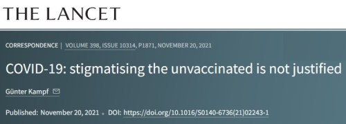 LANCET: “I call on high-level officials and scientists to stop the inappropriate stigmatisation of unvaccinated people, who include our patients, colleagues, and other fellow citizens, and to put extra effort into bringing society together.