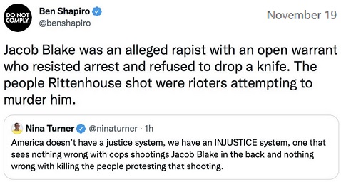 KENOSHA: CLICK https://twitter.com/lyndseyfifield/status/1461887218792939522 [:06] to hear one reporter speculate why the dreaded riots didn’t occur.