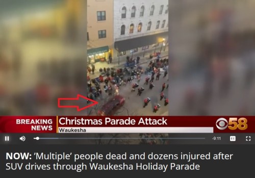 Five are dead and 48 are injured. Two of the injured are children who are in critical condition. The suspect has a long criminal history and has served at least two jail sentences. Earlier this month, he punched his child’s mother in the face and hit her with his car, leaving tire tracks on her pants leg. He was out on a ridiculously low bail and had reportedly been involved in yet another “domestic disturbance” just minutes prior to plowing into the parade.
