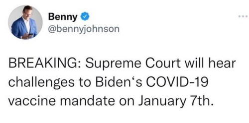 MANDATES: In response to a federal appeals court reinstating FAUXTUS’ unconstutional vaxxx mandate, the ACLJ has filed an emergency stay with SCOTUS. The Supremes have ordered the Biden Administration to respond by December 30th.