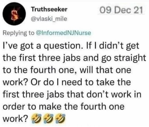 VAXXX: “Inconvenient”? What if it causes a permanent disability or death? [:44] – CLICK https://twitter.com/RastaRedpill/status/1474291409113042955 [2:20] to see a pharmacist admit that there is no informed consent and he shouldn’t be giving the shots, but he does it because he’s been told to. The print out that supposedly lists safety information is tightly folded and glued; it looks like it’s got all kinds of stuff on it, but when it’s opened, it’s totally blank.