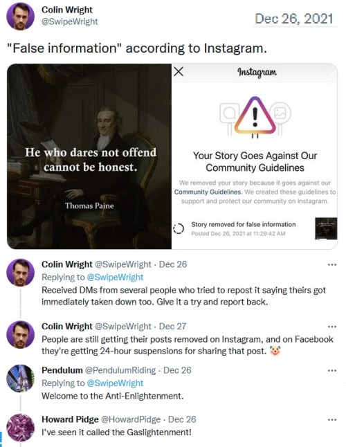 GASLIGHTENMENT: Over the past week, Facebook and Instagram users have been punished for sharing a quote by one of the leading minds behind the American Revolution.