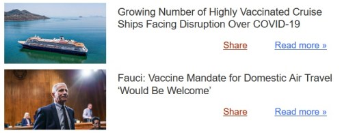 VAXXX: The “Fauci is an idiot” screenshot above is from an Epoch Times email alert. He wishes we had a mandate banning the dirty unvaxxxed from boarding airplanes … because that has worked SO well on cruise ships.