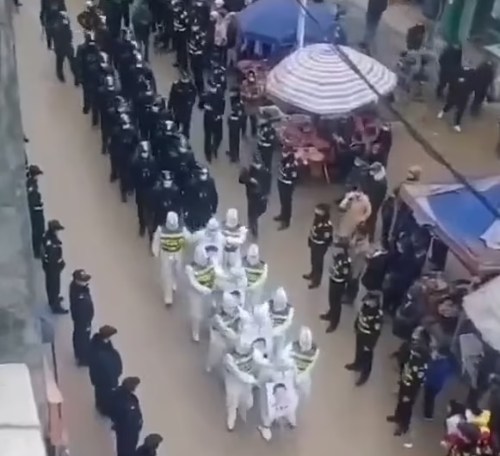 CHICOMS: Police in Jingxi city paraded alleged violators of Covid rules through the streets. The four suspects had to carry placards displaying their photos and names. China banned such public shaming and parading of criminal suspects in 2010, but the practice has resurfaced 13 million in China are barred from going outside, even for food.