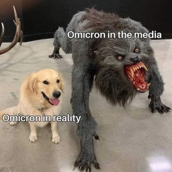 RESISTANCE: As the graph above shows, the Left’s Omicron fear porn is failing. Maybe that’s because enough of us have heard that it’s 80% less likely to cause hospitalization than the original and 70% less than the Delta.
