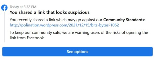 FAKEBOOK: It looks like somebody caught on to the fact that I post “questionable” (translation: true) information about the ‘rona and put us on its poopoo list. I guess I’ll have to create tiny URLs from now on. One of my mentors has tried this to get around all-site bans and found that it works (for now).