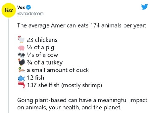 CARNIVORES UNITE: Responses to Vox’s tweet – “Save the planet by eating factory made processed bean paste flavoured with chemicals.” “I think we need to up our bacon game in 2022.” “137 shellfish? Maybe in one crawfish boil.” “I’ve eaten a tenth of a cow in one meal.” “I take this as a challenge. Thank you, Vox, for my New Years resolution.”