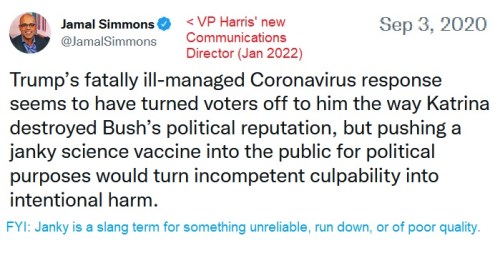 VFAUXTUS: During the 2020 Democratic presidential primary, Simmons tweeted, “I think #JoeBiden’s heart is in the right place but I just heard the perfect summation of his position. ’Black ppl are happy to have Biden at the cookout but he should remember he didn’t get the original invitation on his own. He was a plus one.’ Don’t get too comfortable.”