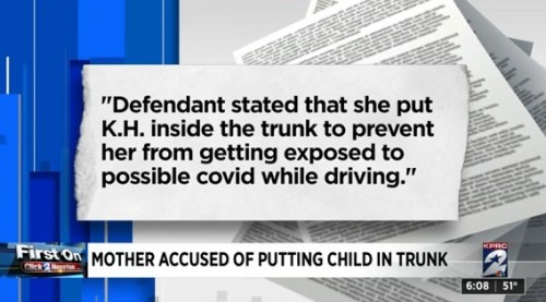 CHILD ABUSE: CLICK https://rumble.com/vs8vul-liberal-teacher-charged-for-quarantining-kid-in-car-trunk.html [2:01] to hear about the mom and long-time teacher who locked her kid in the trunk of her car, because he had tested positive for COVID. Police plan to arrest her as soon as they can find her.