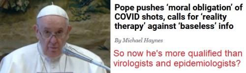 - https://www.lifesitenews.com/news/pope-francis-pushes-moral-obligation-of-covid-jabs-calls-for-reality-therapy-against-baseless-information/