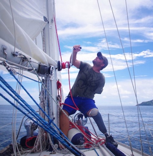 RECORD: Dustin Reynolds has become the first double amputee to sail around the world. He said it was “challenging” to fix things on a rolling boat with just one hand.