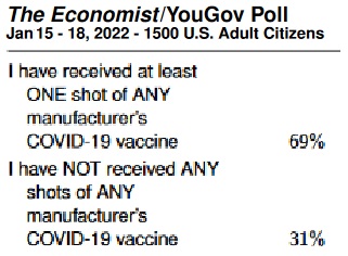 UNVAXXXED: A recent poll of 1,500 American adults found 31% saying they had not received even one jab. Within this unvaxxxed group –