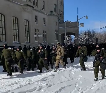 Excerpts from Ace of Spades: “The Canadian Charter of Human Rights guarantees the right to protest peacefully– which the truckers have done. … The Ottawa Police Department is reportedly beginning a sweep through downtown Ottawa to remove Freedom Convoy protesters that have occupied the area since late January. … Tow truck drivers had previously refused to tow the big rigs but the Dictator Trudeau threatened them with arrest, loss of license, and loss of their vehicles if they did not follow the Doughy-Faced Dictator’s commands.”
