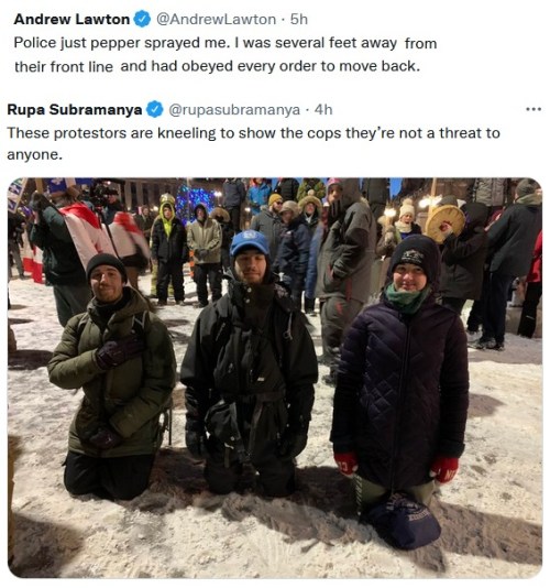 “Thousands of police have surrounded the Ottawa convoy over the course of the past 90 mins. More continue to come in to back up the front line, which has been methodically pushing in, foot by foot. An air of panic on the ground. … It feels like the beginning of the end.” – Nate Hochman