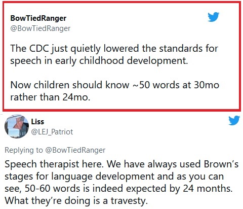 CDC: Instead of highlighting the harmful effects that masks and lockdowns have had on the speech development of young children, the CDC decided to lower standards.