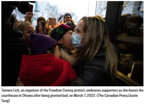 CANADA: Tamara Lich, one of the key organizers of the Freedom Convoy, has been granted bail by an Ontario court. When she was arrested on Feb. 22, a judge said she was too much of a risk to public safety to be allowed to roam the streets. Her lawyer filed a bail review and the new judge granted bail. He said the first judge had been too subjective.