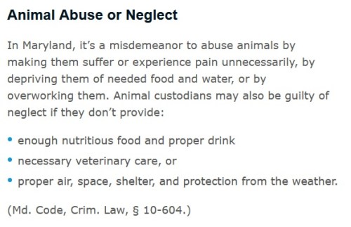 - https://www.lawyers.com/legal-info/criminal/animal-law/animal-cruelty-laws-in-maryland.html