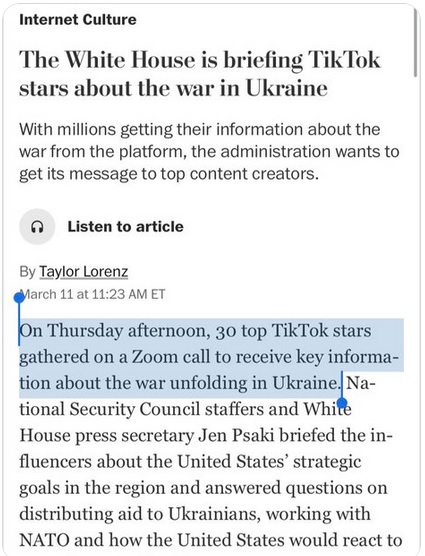 - https://twitchy.com/dougp-3137/2022/03/11/biden-staffer-explains-why-wh-has-been-briefing-tiktok-stars-about-war-in-ukraine/