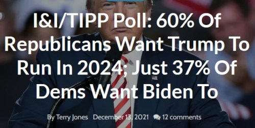 - https://issuesinsights.com/2021/12/13/ii-tipp-poll-60-of-republicans-want-trump-to-run-in-2024-while-37-of-democrats-want-biden/