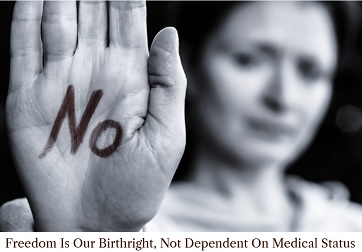 After quoting Article 1 of the UN Declaration of Human Rights states that “all humans are born free and equal in dignity and rights”, Dr. Brown asserts, “In consequence, freedom cannot be conditional on medical status or choice of medical procedure. If we are born free, we do not acquire freedom through compliance.”