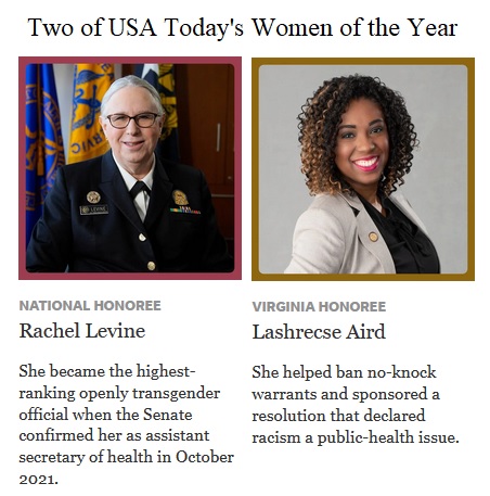 Surprise, surprise, also NOT. Sears is the first woman of color and first Jamaican-born American citizen to be elected to statewide office in Virginia, but she’s … you know … a REPUBLICAN. So, unlike “Rachel” Levine, “not a real woman.” Instead, USA Today chose Lashrecse Aird as Virginia’s honoree. Aird was a Democratic representative for Petersburg for three terms, but was defeated when she ran for a fourth term in 2021.