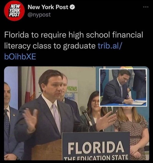 FLORIDA: Starting with the fall of 2023, high school students will be required to pass a half credit class in basic financial literacy to graduate from high school.