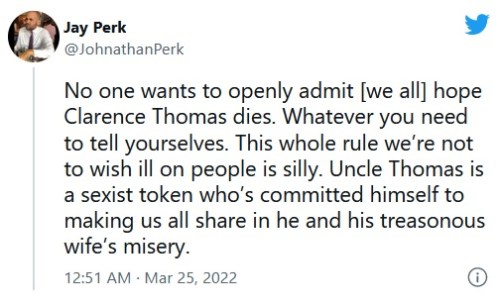 DEMOCRATS: The party that claims to hold the patent on civility and tolerance seems to produce some really vile haters. And Twitter tolerates them. At least three Tweeters have been banned for saying trans men are not women, so you know that if anyone ever said the above about RBG, Sotomayor, or Kagan, his Twitter account would be canceled. But not this jerk. His ugliness is still up for all to see. My favorite response is, “You’re really going to use the term ‘token’ after Biden’s pick?