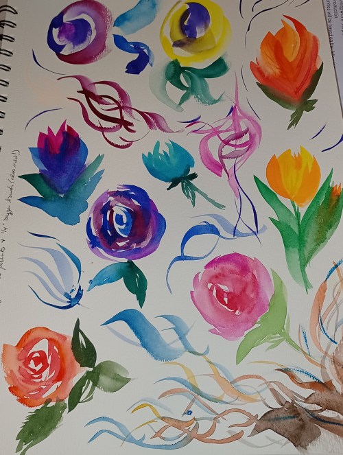 GRAMMY NOTES: Mama has been so stressed from unpacking that I nagged her to get her paints out and start taking art breaks. Today, she sent some of the sketches she did while watching a dagger brush strokes tutorial. I did it too. We both learned a lot. Anyway, Army Princess texted that her son said Mama “did almost as good a job as Grammy in your sketching.” LOLOLOL
