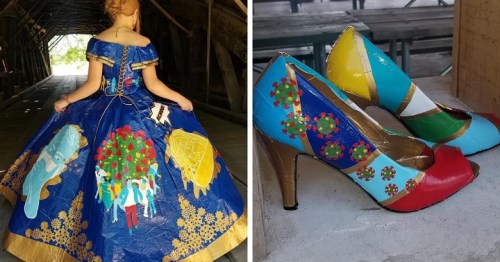 Read about the graphic at the second link. It’s gorgeous, but really … duct tape stinks! I can’t imagine how bad that outfit smells, esp the MASK. Ew.