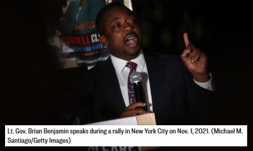 NEW YUCK: Brian Benjamin was a state senator until Sept. 9, 2021, when he was appointed by New York Gov. Kathy Hochul to replace her as Lieutenant Governor. She, of course, got bumped up when her skeezy predecessor had to resign. Now, just 9 months later, Benjamin has been arrested and charged with using his authority in a quid pro quo scheme in which he swapped government grants for campaign contributions.