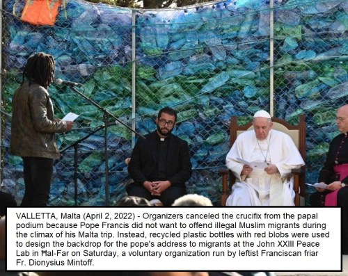 “Saint Paul preached ‘Christ crucified — a stumbling block to Jews and foolishness to Gentiles’ when he brought the gospel to Malta. The Apostle boasted in the scandal of the Cross. Why is the pope ashamed of the Cross before Muslims, especially during Lent?” – Dr. Philip Beattie, president of Pro Malta Christiana and an economist at the University of Malta