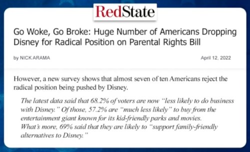DISNEY: Go woke! Go broke! CLICK https://www.facebook.com/watch?v=1400100873840986 [3:54] to hear Dan Bongino talk about the punishment parents are inflicting on the once family-friendly mega-corporation.