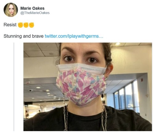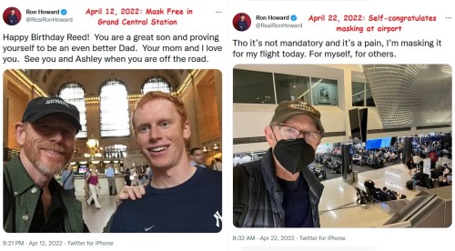 LIBERAL HYPOCRITE: My favorite snark tweet on the masked image – “The important part is that you posted this on social media so we all know what a good person you are.”