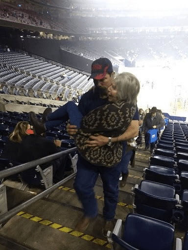 KINDNESS: When this guy noticed an elderly lady having a tough time with the stairs, he took charge of getting her safely to her seat. I’m wondering if she was humming, Someday my prince will come, as he carried her.