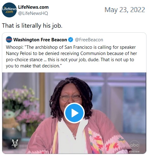 WHOOPI: “Holy Communion is Archbishop Cordileone’s job, just like being ignorant and wrong is Whoopi Goldberg’s job. Everybody’s doing their job!” – Sarah D