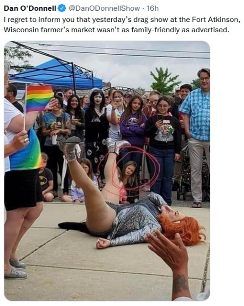 S&G: A not-biased-at-all (that was sarcasm) feature appeared at Fort Atkinson Online, declaring, “A rainbow formed over the Fort Atkinson Farmers Market late Saturday morning when Victorya Atwood took the stage.” One mom told the reporter she loves drag shows. “You can have a very family-friendly drag show, I’m just saying. You can have a very unfriendly family one too, don’t get me wrong. Those are fun also. Somebody dancing to music in a dress has nothing to do with sexuality or anything lewd.” ::smh::