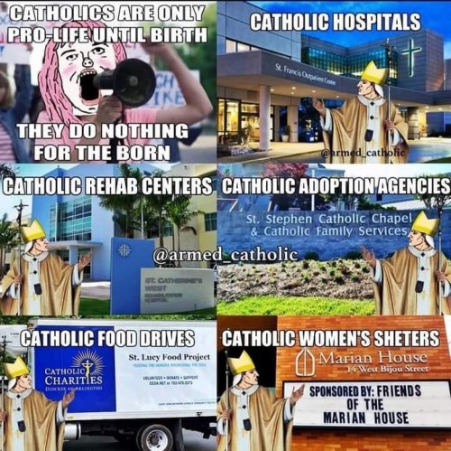 CATHOLIC: I saw this graphic appears on Facebook with this comment – “A few years ago there was an amazing Twitter thread started by a pro-choice lady, condescendingly asking pro-lifers what they do to help after birth, followed by an, ‘I’ll wait.’ The pro-lifers showed up in such a big way! It was freaking awesome.”